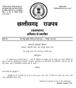रायपुर। छत्तीसगढ़ शासन के सामान्य प्रशासन विभाग द्वारा जारी अधिसूचना क्रमांक 91 [ESTB-101(1)/7/2024-GAD-4] के तहत राज्य प्रशासनिक सेवा में भर्ती हेतु पदोन्नति का प्रतिशत 40% से बढ़ाकर पुनः 50% कर दिया गया है। इस संबंध में अधिसूचना का राजपत्र में प्रकाशन हो चुका है।