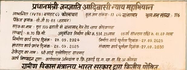रामपुर विधानसभा क्षेत्र के अंतर्गत ग्राम बताती से बांसाखार मेन रोड व्हाया कोरवापारा तक बन रही इस सड़क का निर्माण 28 सितंबर 2024 को शुरू हुआ था और इसे 27 सितंबर 2025 तक पूरा किया जाना था, लेकिन निर्धारित समय बीत जाने के बाद भी कार्य अधूरा है। इस परियोजना पर 5.34 करोड़ रुपये की लागत स्वीकृत है, जबकि 5 वर्षों के रखरखाव के लिए अलग से 41.07 लाख रुपये निर्धारित किए गए हैं।