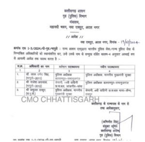 4/ अभिषेक अग्रवाल, रा.प्र.से. (2013), प्रबंध संचालक, छत्तीसगढ़ स्टेट मार्केटिंग कार्पोरेशन लिमिटेड को अस्थाई रूप से आगामी आदेश पर्यन्त उप सचिव, मंत्रालय के पद पर पदस्थ करता है।